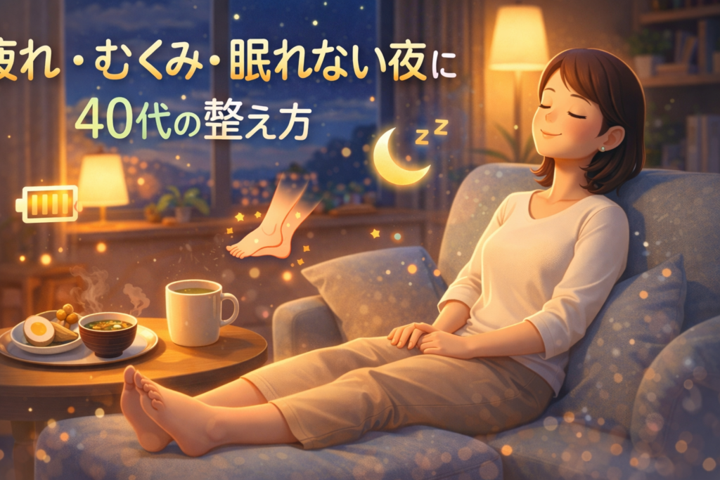 40代の働く女性が「疲れが抜けない」「むくむ」「眠れない」を軽くする方法 結論は、40代の不調は「気合い」ではなく、回復が追いつかない生活リズムが原因になっていることが多いです。理由は、40代の働く女性は、日中ずっと人と関わりながら判断や対応を... -