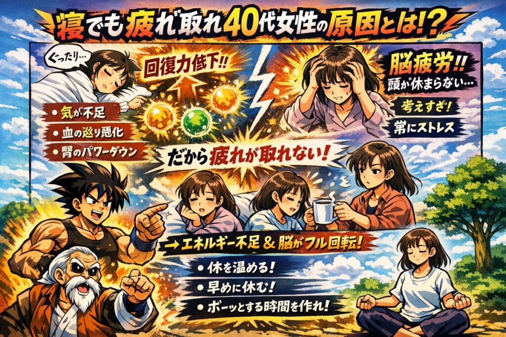 この記事では、40代女性に多い「寝ても疲れが取れない状態」について、中医学の考え方も交えながら、初心者の方にもわかりやすく解説します。