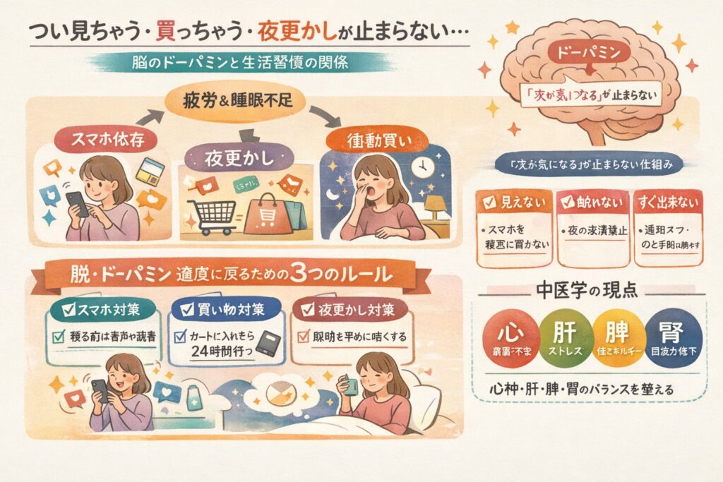 そして夜更かし→翌日さらに疲れる→また刺激へ、という循環が出来上がります。