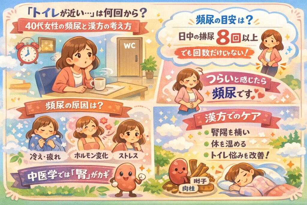 「トイレが近い…」は何回から?40代女性の頻尿を“正しく知る”ための基礎知識と漢方の考え方