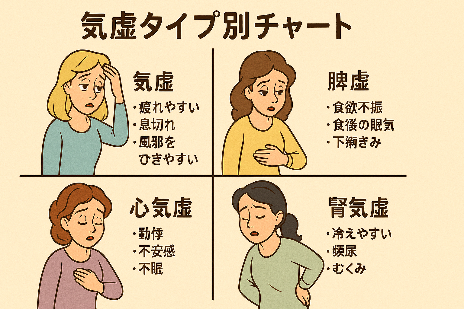 同じ“気虚”でも、「脾虚(消化弱い)」「腎虚(冷え)」などタイプがあります。