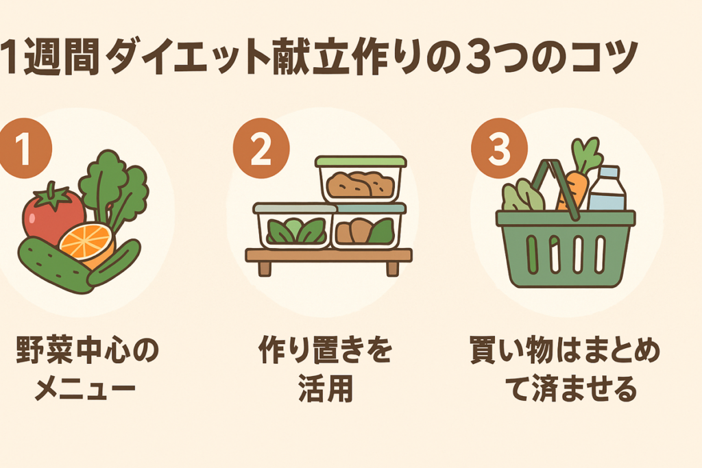 1週間ダイエットは、食材選び・調理方法・保存テクニックを組み合わせることで成功率が高まります。