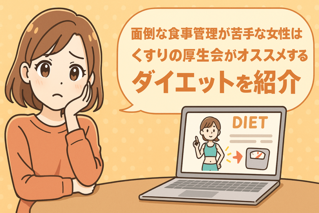 そこで今回は、そんな“面倒くさがり”な女性でも続けやすい、くすりの厚生会がオススメするダイエット法をご紹介します。