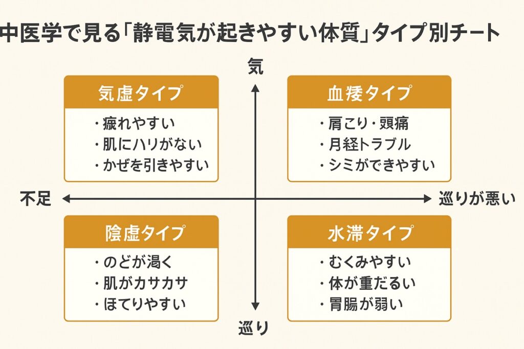 中医学では「気が巡れば電気も巡る」と言われるほど、体内のバランスと静電気体質は密接なのです。